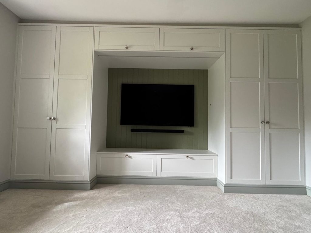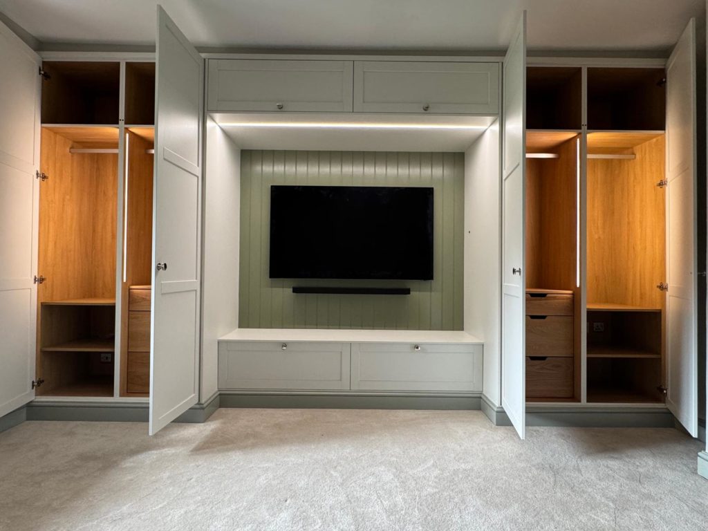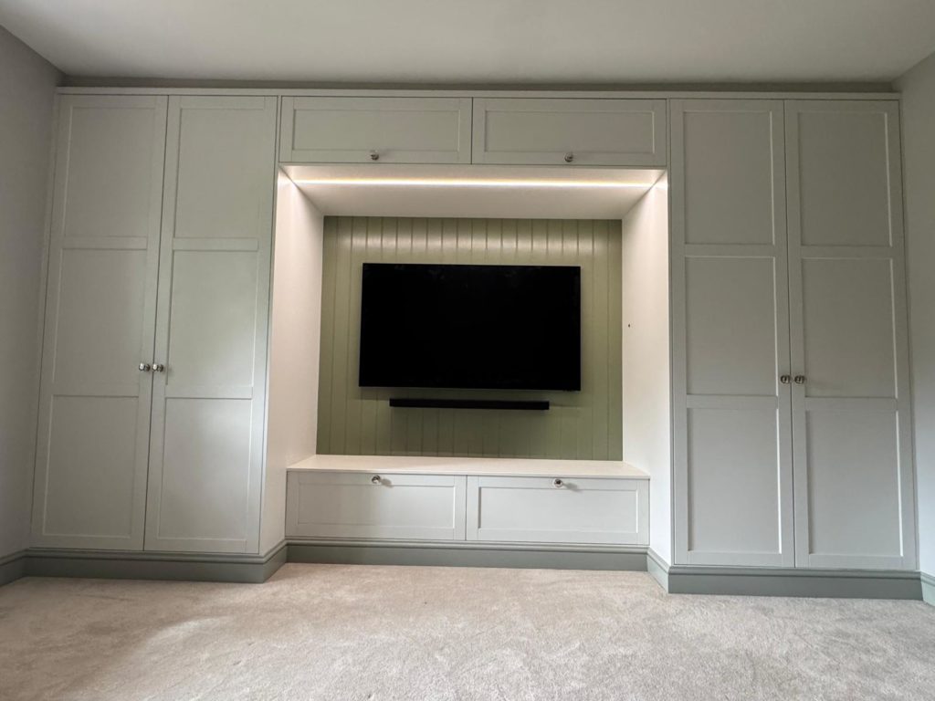 We wre asked to design and install some bedroom storage while making room for a TV. Finished with Shaker doors and solid oak soft close draws. Bedroom Storage Bedroom Storage Bedroom Storage Bedroom Storage and TV fit out