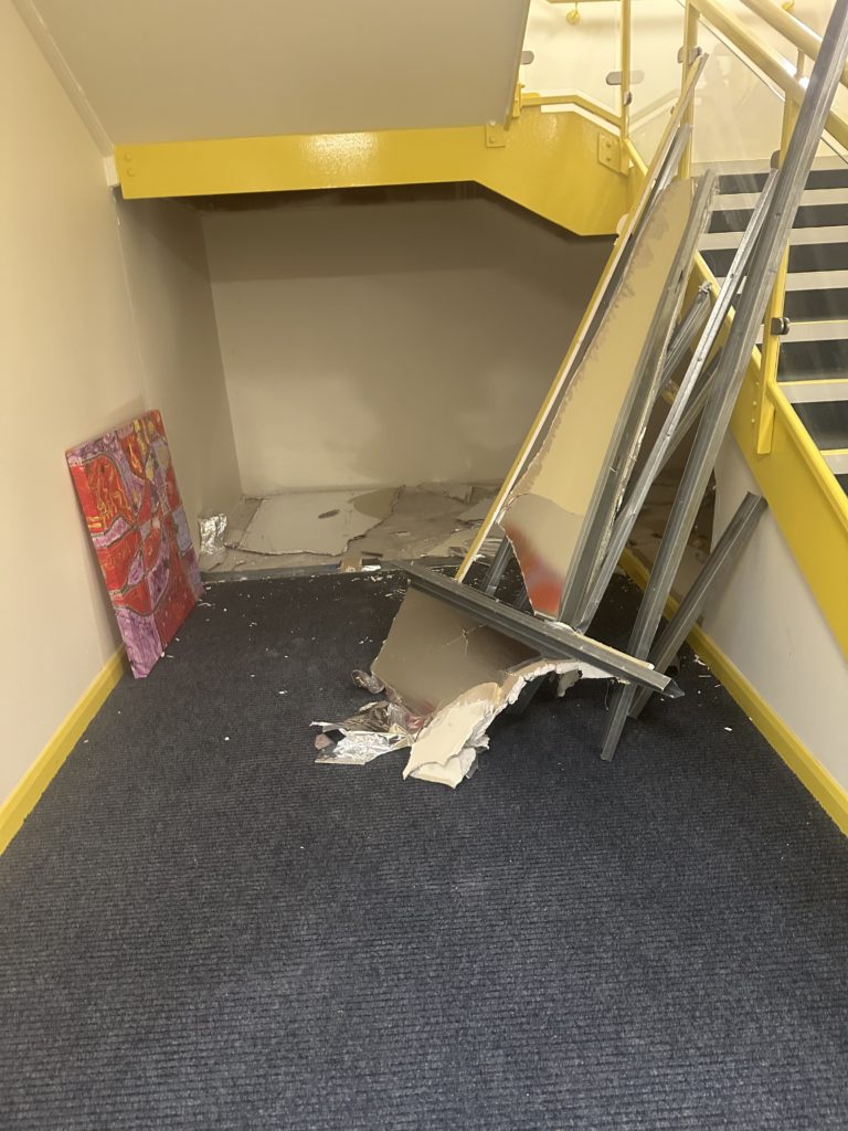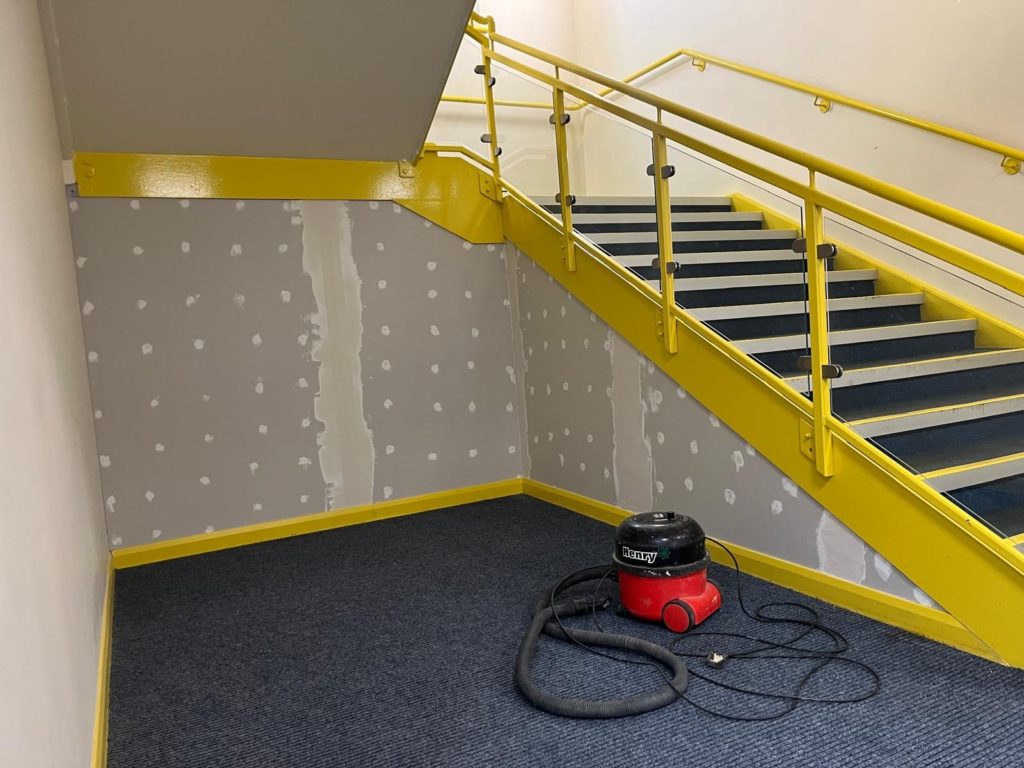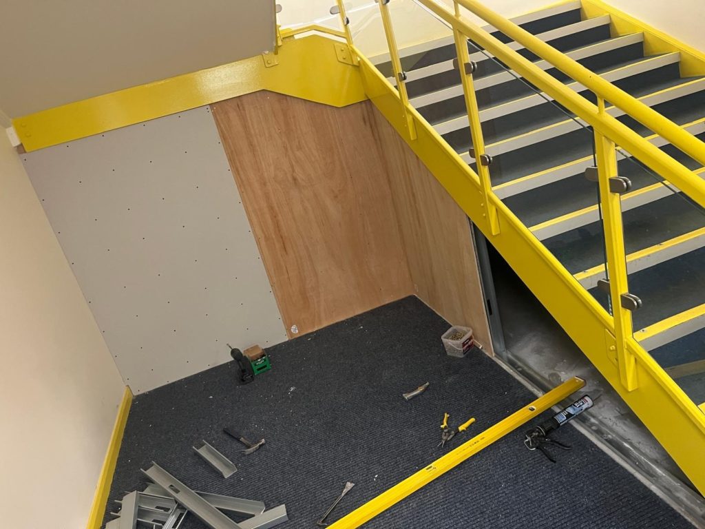 The partitioning under the stairs has been badly damaged & requires replacing. We were asked to complete this in a timely fashion